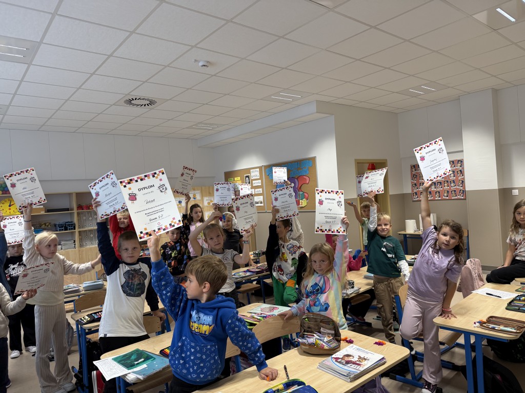 W październiku uczniowie edukacji wczesnoszkolnej wzięli udział w „Lekcji higieny cyfrowej” prowadzonej przez p. dr Dorotę Pietruszkiewicz z Zachodniopomorskiej Szkoły Biznesu w Szczecinie. Rozmawiała z uczniami jak dbać o zachowanie równowagi pomiędzy aktywnościami w sieci i poza nią. Tematyka zajęć dotyczyła kształtowania zdrowych nawyków cyfrowych, bezpieczeństwa w sieci, zarządzania czasem oraz rozumienia wpływu technologii na zdrowie fizyczne i psychiczne.